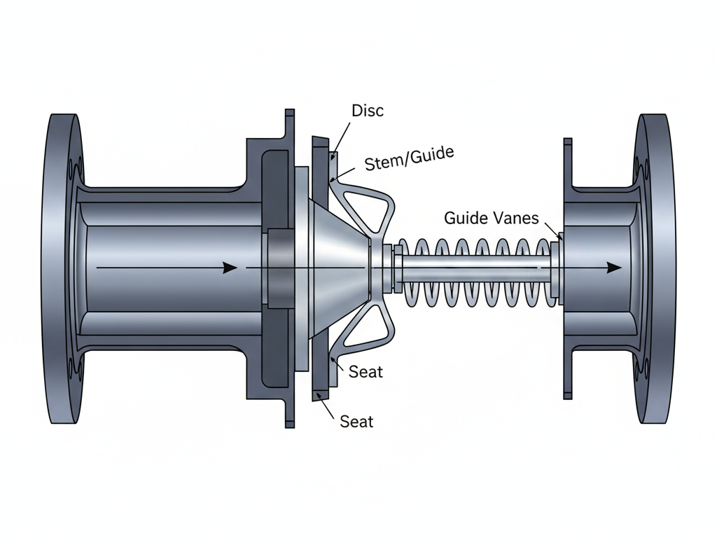 The spring-assisted axial check valve provides rapid, non-slam closure to prevent damaging pressure surges. This design protects pumps and upstream equipment from cryogenic shock while maintaining a low-pressure-drop, linear flow path.